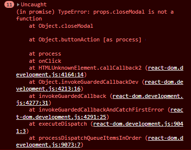 에러 발생 업무중 에러가 발생했다. Uncaught (in promise) TypeError: props.closeModal is not a function. 정말 바보같은 상황이었다. 알고보면 아무것도 아니고 간단한 해결이지만, 처음 시작하는 초심자의 마음일떈 내가 뭐 잘못한지 모르고 왜 오류나는지 찾기 때문에 이런 것도 블로그에 적어본다. 상황 설명 나의 경우 내부 컴포넌트의 모달을 부모의 구현부에서 속성으로 show: true/false 를 하는데 이때 '닫기' 또는 완료 했을 경우 props 로 제공한 closeModal 이라는 함수를 호출한다. (any) 그런데 제대로 제공을 하고 호출을 했음에도 불구하고 is not a function 이라는 오류가 나는게 아닌가? 해결 방법 알고보니 저 모달..